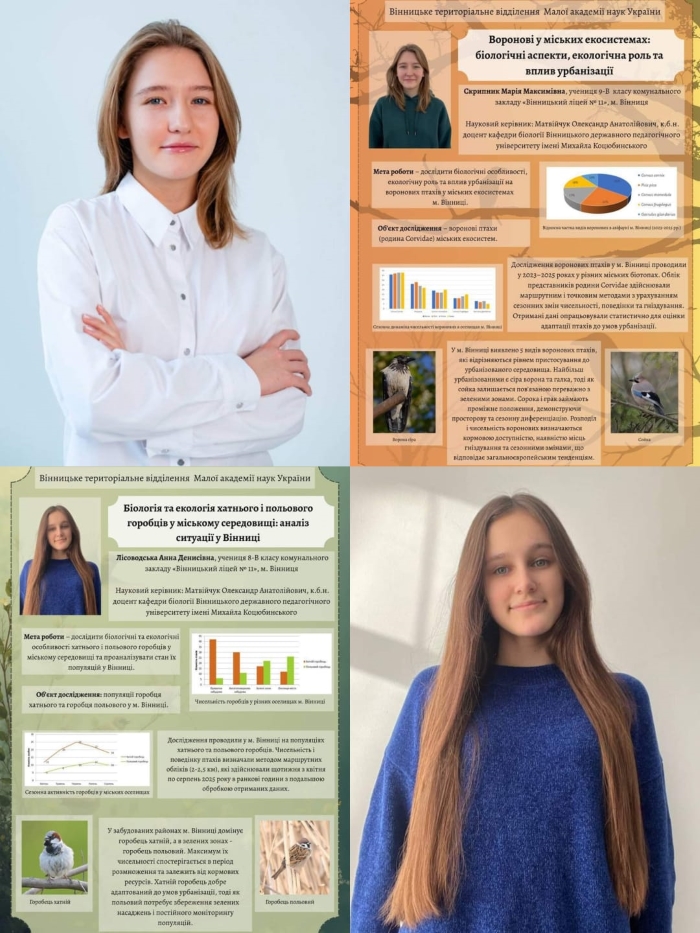 Пишаємося результатами наших учениць на ІІ (обласному) етапі Всеукраїнського конкурсу-захисту науково-дослідницьких робіт МАН! 🌟 Наші призери: ✅ Скрипник Марія, учениця 9-В класу, у секції "Зоологія" отримала диплом І ступеня. ✅ Лісоводська Анна, учениця 8-В класу, у секції "Зоологія" отримала диплом ІІ ступеня. Зичимо Марії Скрипник успіхів та впевненості у фінальному, ІІІ етапі Всеукраїнського конкурсу-захисту наукових робіт! 21.02.2026 відбувся Відкритий чемпіонат Хмельницької області з чирлідингу, який зібрав 920 спортсменів з усієї України. Щиро дякуємо Oleksii Shuliakov, організаторам за бездоганну підготовку, турботу про кожну команду та організацію на найвищому рівні. Неймовірні враження, крута атмосфера, справжнє спортивне свято, яке надихає та об'єднує! Дякуємо за емоції, підтримку і любов до чирлідингу 💙💛11 ліцей ❤️команда ViBlaze❤️ Гудима Аліна (Cheer-solo) 🥈місце! Performance (group) - 🥉місце Благодійний турнір з настільного тенісу (5-6 січня 2026 року об'єднав освітян Вінницької громади. Учителі нашого ліцею впродовж двох днів поспіль змагалися пліч-о-пліч у ліцеї №23 в командному, парному та особистому заліках. Вітаємо учнів, які отримали стипендію від Вінницького міського голови Сергія Моргунова! Це високе визнання вашої наполегливої праці, таланту та прагнення до знань. Нехай ця стипендія стане для вас мотивацією до нових звершень, відкриє більше можливостей для навчання й розвитку та надихне на подальші успіхи. Бажаємо вам впевненості у власних силах, яскравих досягнень і реалізації всіх мрій! Пишаємося нашими талановитими черлідерками, які гідно представили ліцей на змаганнях в Івано-Франківську! Команда виборола срібну медаль та принесла до ліцею кубок, підтвердивши свій високий рівень майстерності та командного духу. Пишаємося Гудимою Аліною, ученицею 6-Г класу, яка у соло-виступі здобула золоту медаль! 🌟 Вітаємо дівчат із чудовим результатом і бажаємо нових перемог та яскравих виступів! 💛💙 🎉 Вітаємо переможців І (міського) етапу Всеукраїнських учнівських олімпіад з навчальних предметів! Призові місця здобули: