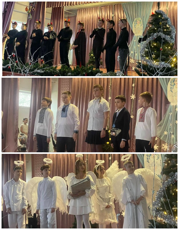 Учні 5-В та 6-А класів розкрили перед нами свою чарівну історію - виставу «Чари Миколаївської ночі», де мелодія добра звучала голосніше за будь-які слова.