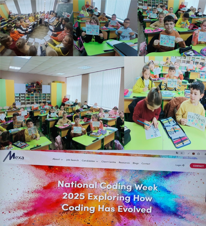 Учні 2-А класу, в рамках міжнародного проекту e-Twinning "No bullying just playing" взяли активну участь у Європейському тижні кодування присвяченому місячнику протидії булінгу (вчителі англійської мови Кухарець О.О., Хмельовська М.М.).